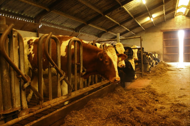 naar het rust-hok voor de droge koeien.